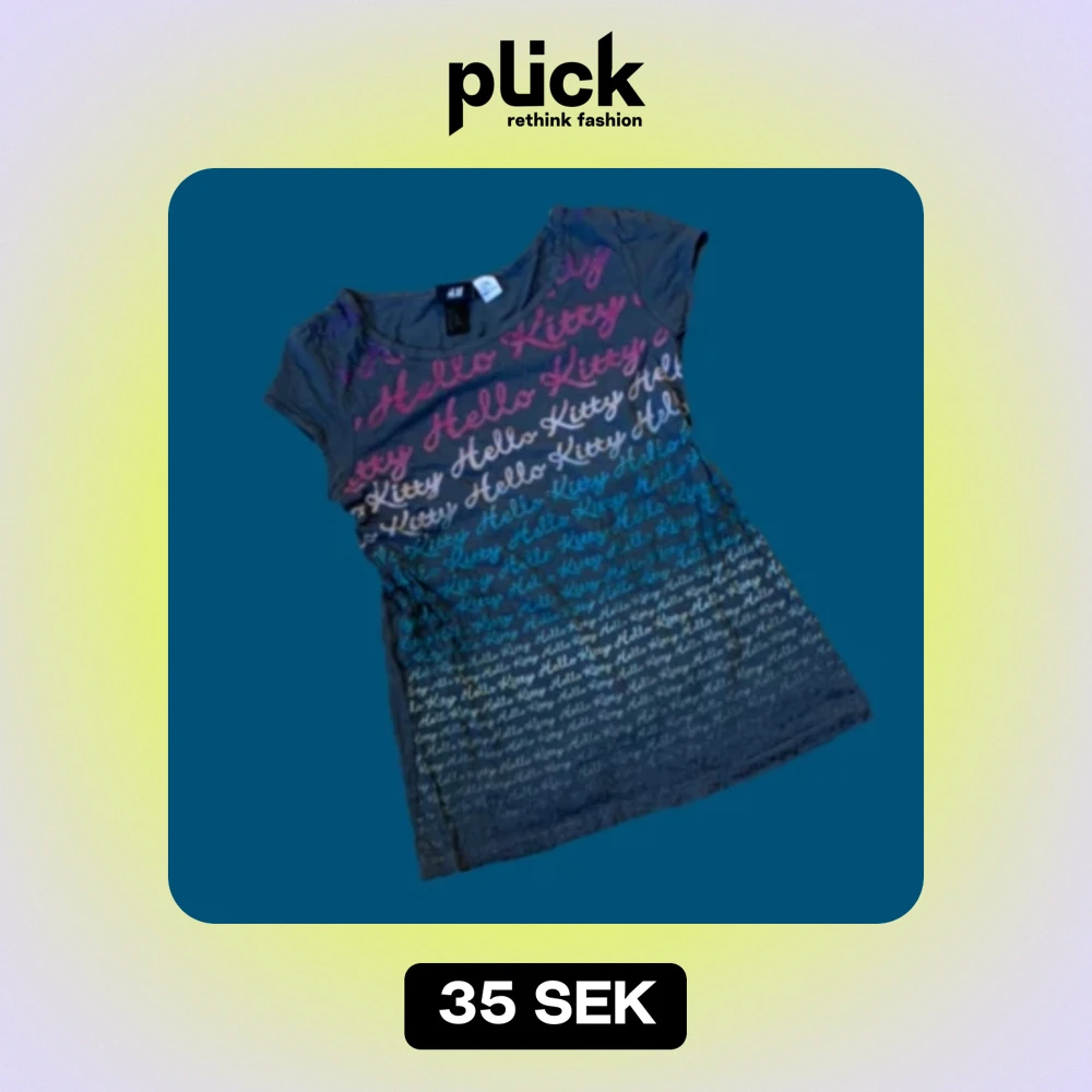 Grå t-shirt från hm med ”hello kitty” tyckt. Storlek 170 vilket är ungefär S.