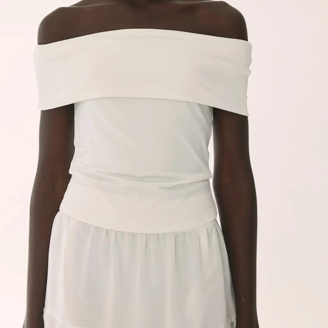 Säljer nu min vita off shoulder topp då den är för stor för mig. Köpte den i somras så den är knappt använd💕Skriv privat för fler bilder