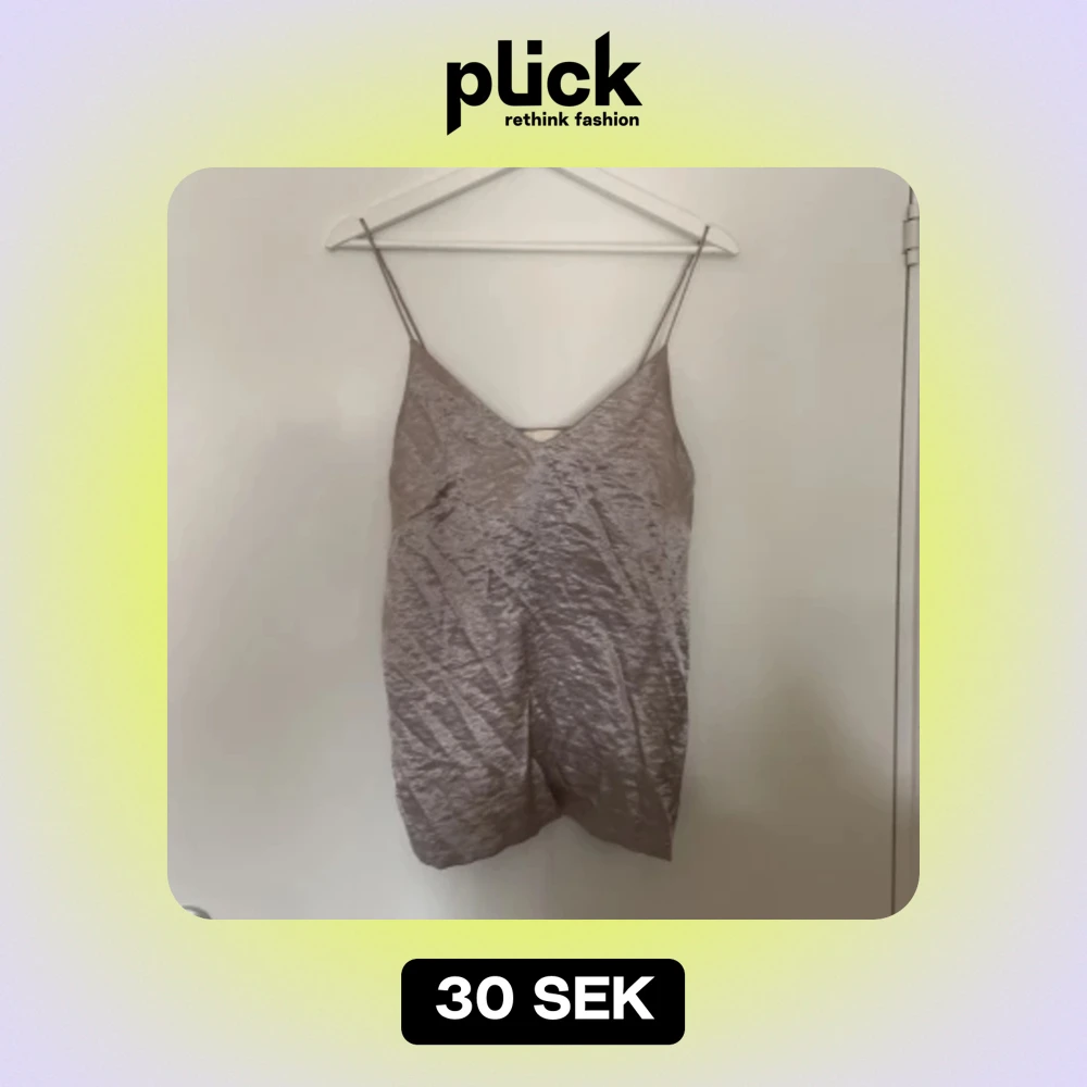 Säljer en superfin beige linnetopp från H&M. Den har en glansig finish som ger en lyxig känsla och tunna axelband för en elegant look. Perfekt för både vardag och fest!