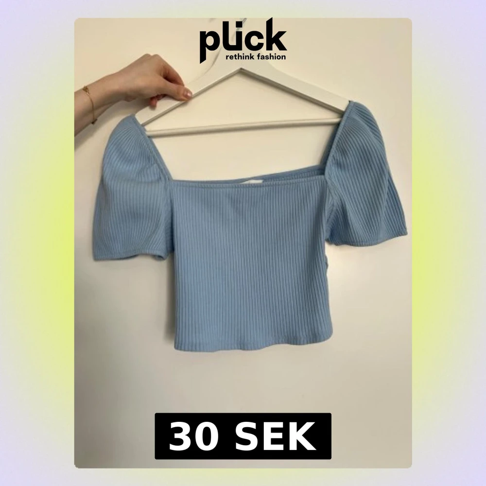 Superfin ljusblå ribbad topp från H&M med puffiga korta ärmar och croppad passform. Toppen har en fyrkantig urringning och är perfekt för dig som gillar en trendig och söt stil. Tillverkad i mjukt material som känns skönt mot huden.