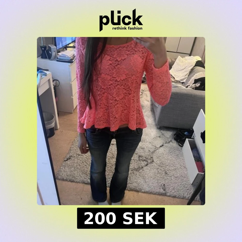 Säljer en superfin rosa blus med lång ärm och rund hals. Blusen är helt i spets med blommigt mönster och har en lätt utsvängd, flowy passform.