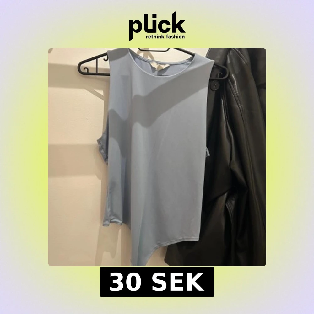 Säljer en ljusblå ärmlös linnebody med rund hals och cool asymmetrisk nederkant. Toppen har en clean och minimalistisk look, perfekt för dig som gillar stilrena plagg. Materialet känns mjukt och lätt mot huden.