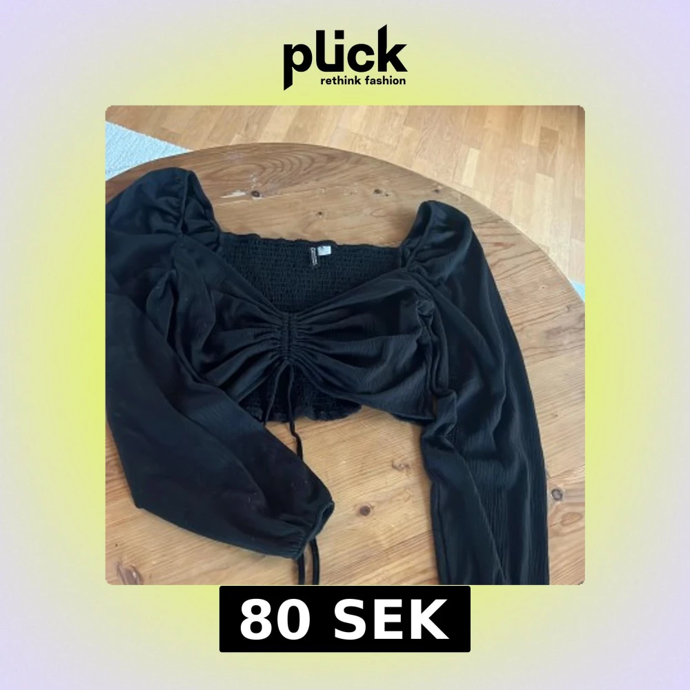 Snygg svart långärmad topp från H&M med puffiga ärmar och knytning framtill. Toppen har en smockad rygg för extra komfort och passform.