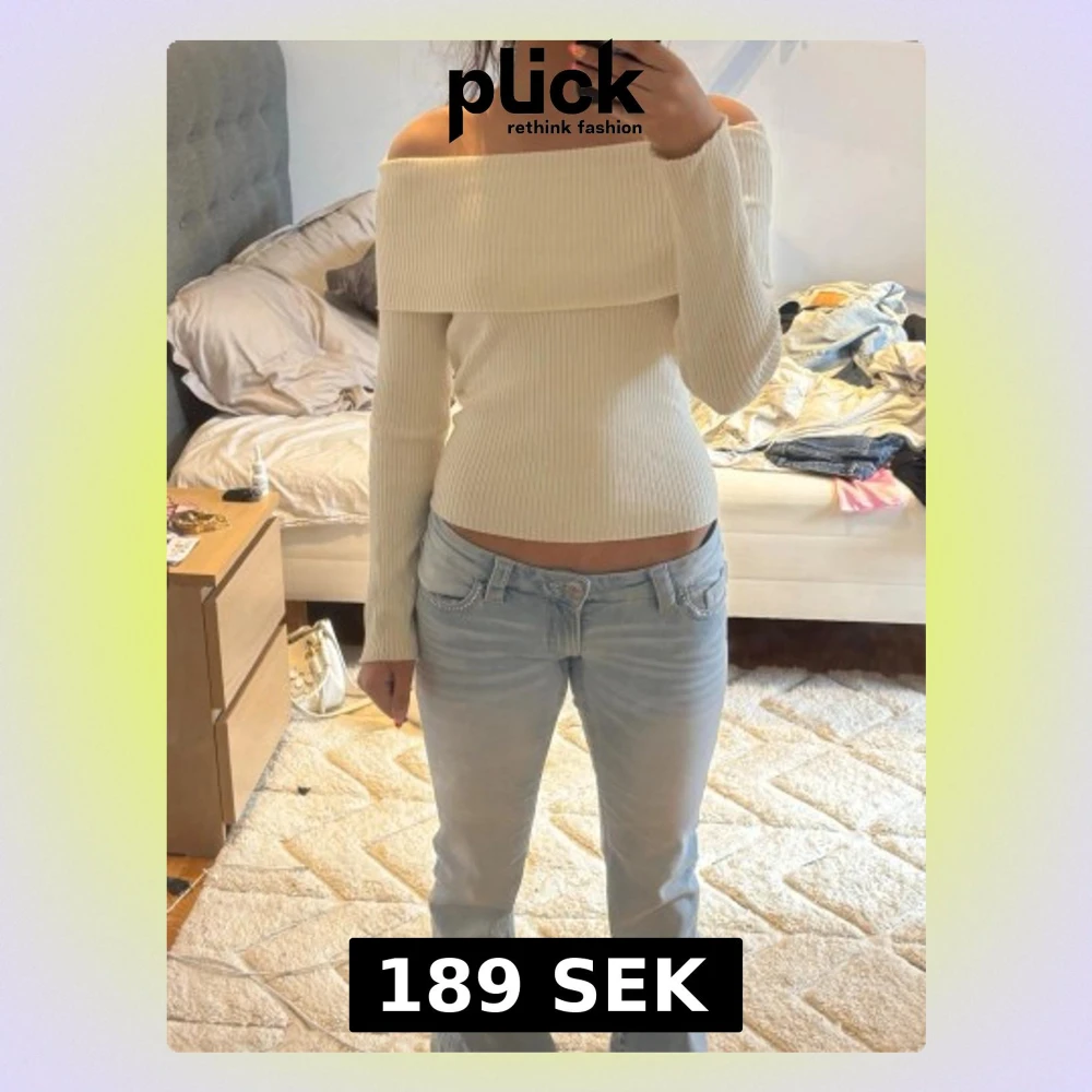 Säljer en ljus, ribbad offshoulder topp från H&M. Storlek M men passar mig som har storlek S i allt!
