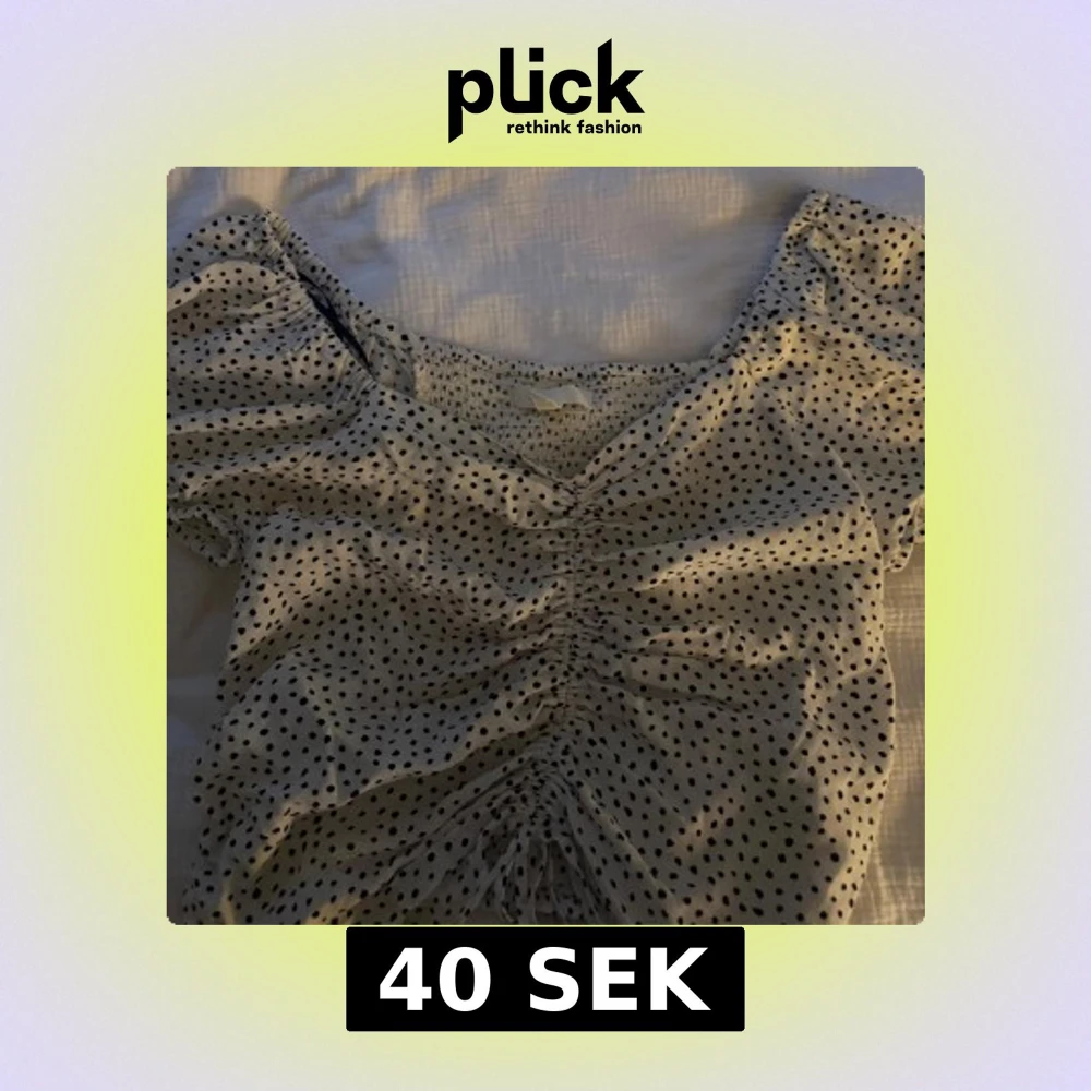 Supersöt vit blus med svarta prickar, puffiga korta ärmar och smockad rygg. Toppen har liten v-ringning och snygg snörning framtill som ger en rynkad effekt. Perfekt för dig som gillar romantisk och trendig stil.