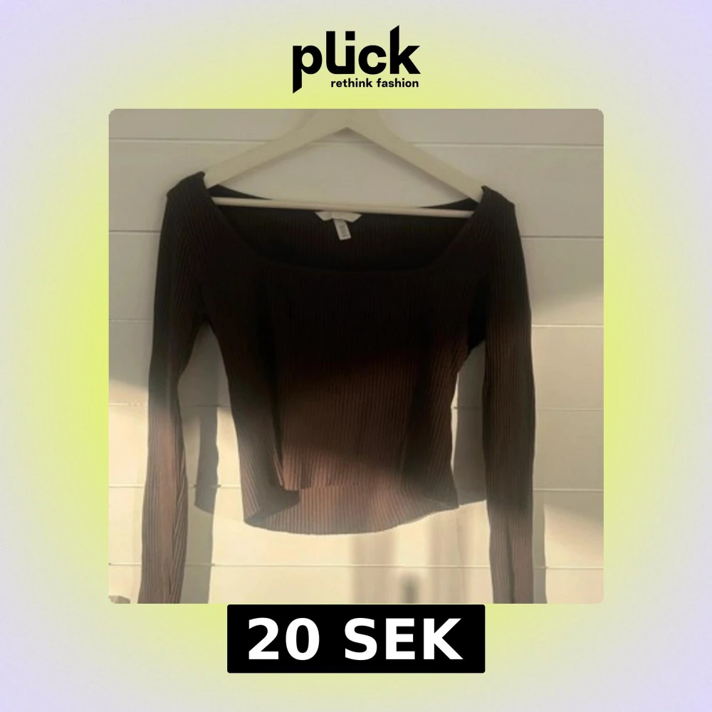 Mörkbrun ribbad topp från H&M med lång ärm och bred, fyrkantig urringning. Snygg croppad passform som sitter tajt och markerar midjan. Perfekt att styla med jeans eller kjol för en trendig look.