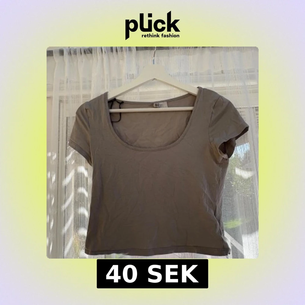 Säljer en enkel och stilren beige croppad topp från H&M. Toppen har korta ärmar och en djup rundad urringning. Perfekt att matcha med jeans eller kjol för en avslappnad look.