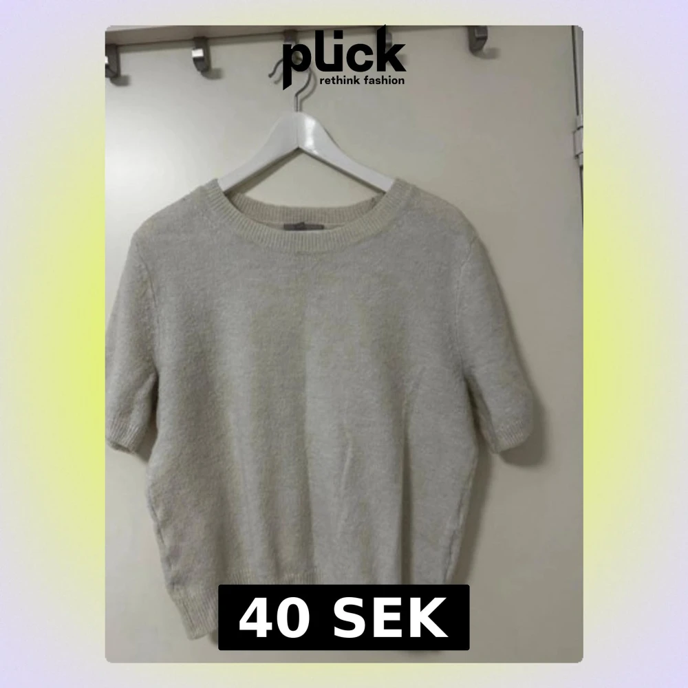 Mysig beige stickad topp från H&M i storlek M. Modellen har korta ärmar, rund halsringning och ribbade kanter. Perfekt till jeans eller kjol för en enkel och clean look. Materialet känns mjukt och har en lätt struktur.