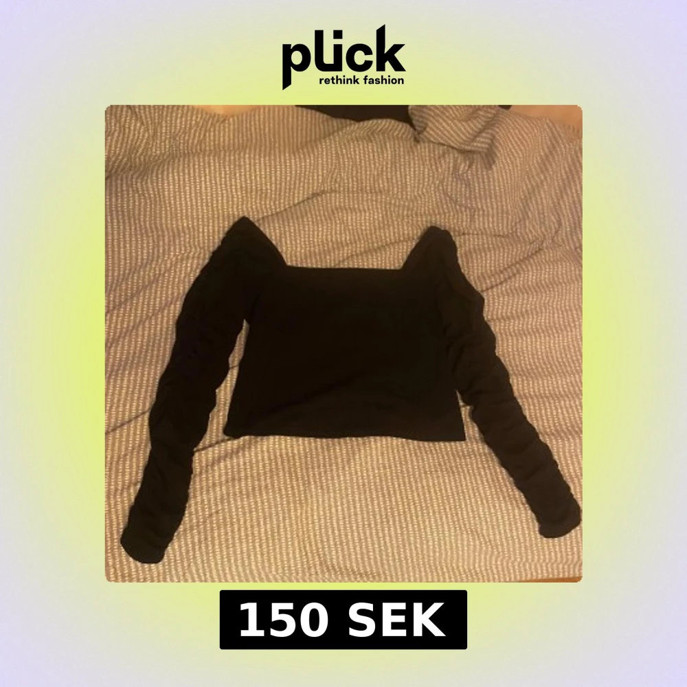 Svart långärmad topp från H&M med croppad passform och fyrkantig urringning. Ärmarna är rynkade längs hela armen vilket ger en cool och trendig look. Perfekt att styla med jeans eller kjol.