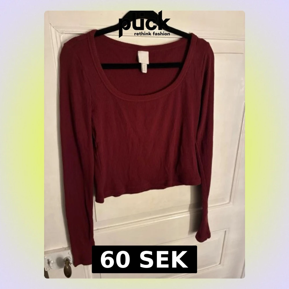 Ribbad långärmad topp från H&M - Säljer en ribbad långärmad topp från H&M i en snygg vinröd nyans.Toppen har en croppad passform och bred, rundad urringning. Perfekt att matcha med höga jeans eller kjol för en chill och trendig look.