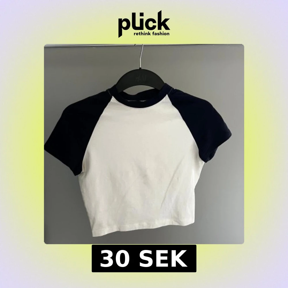 Säljer en snygg vit och svart croppad t-shirt från H&M Divided. Den har korta ärmar och en klassisk rund halsringning. Perfekt för en avslappnad stil.