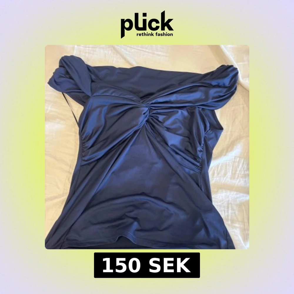 Supersnygg mörkblå offshoulder topp med stor knutdetalj framtill. Sitter tight över axlarna och har en glansig finish som ger en lyxig känsla. Perfekt för dig som vill sticka ut med en cool och trendig look.