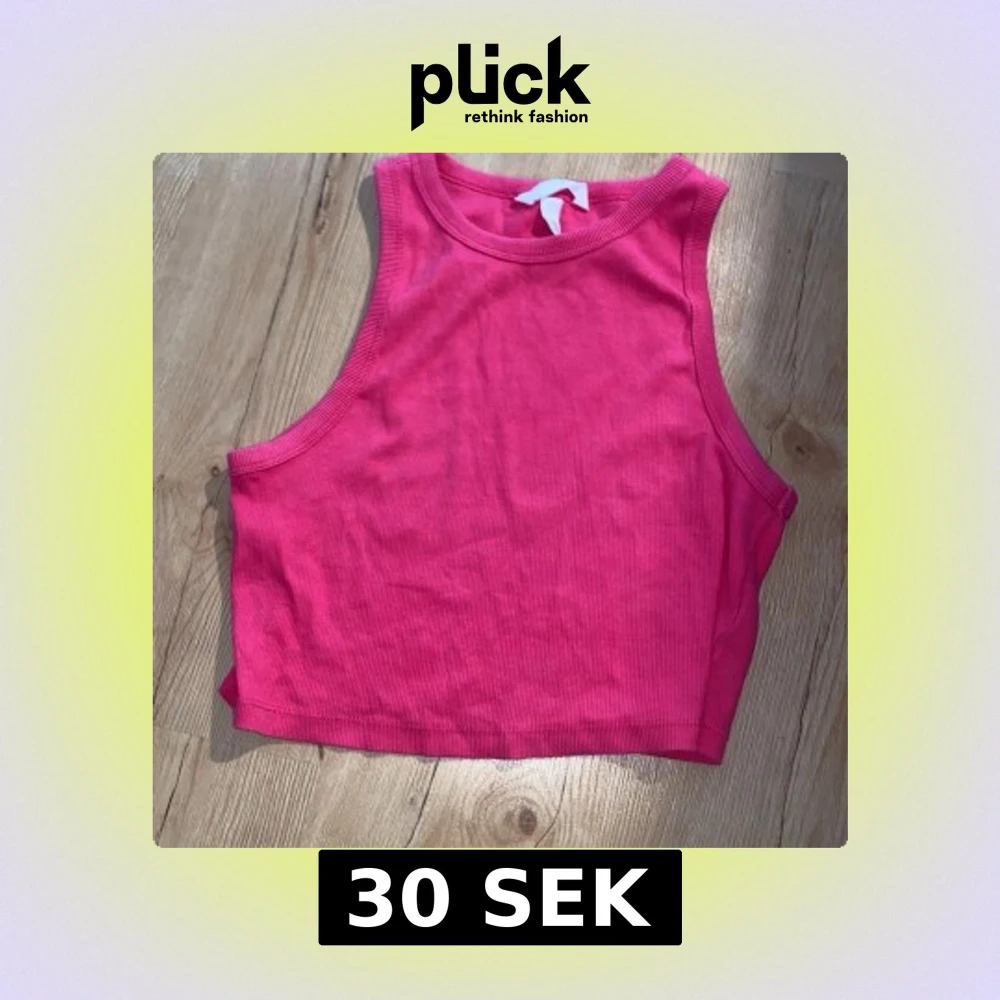 Snygg croppad linnetopp från H&M i en stark rosa färg. Toppen är ribbad och ärmlös med rund halsringning, perfekt för varma dagar. Materialet är mjukt och stretchigt, vilket gör den skön att bära. Passar dig som gillar enkel och trendig stil.