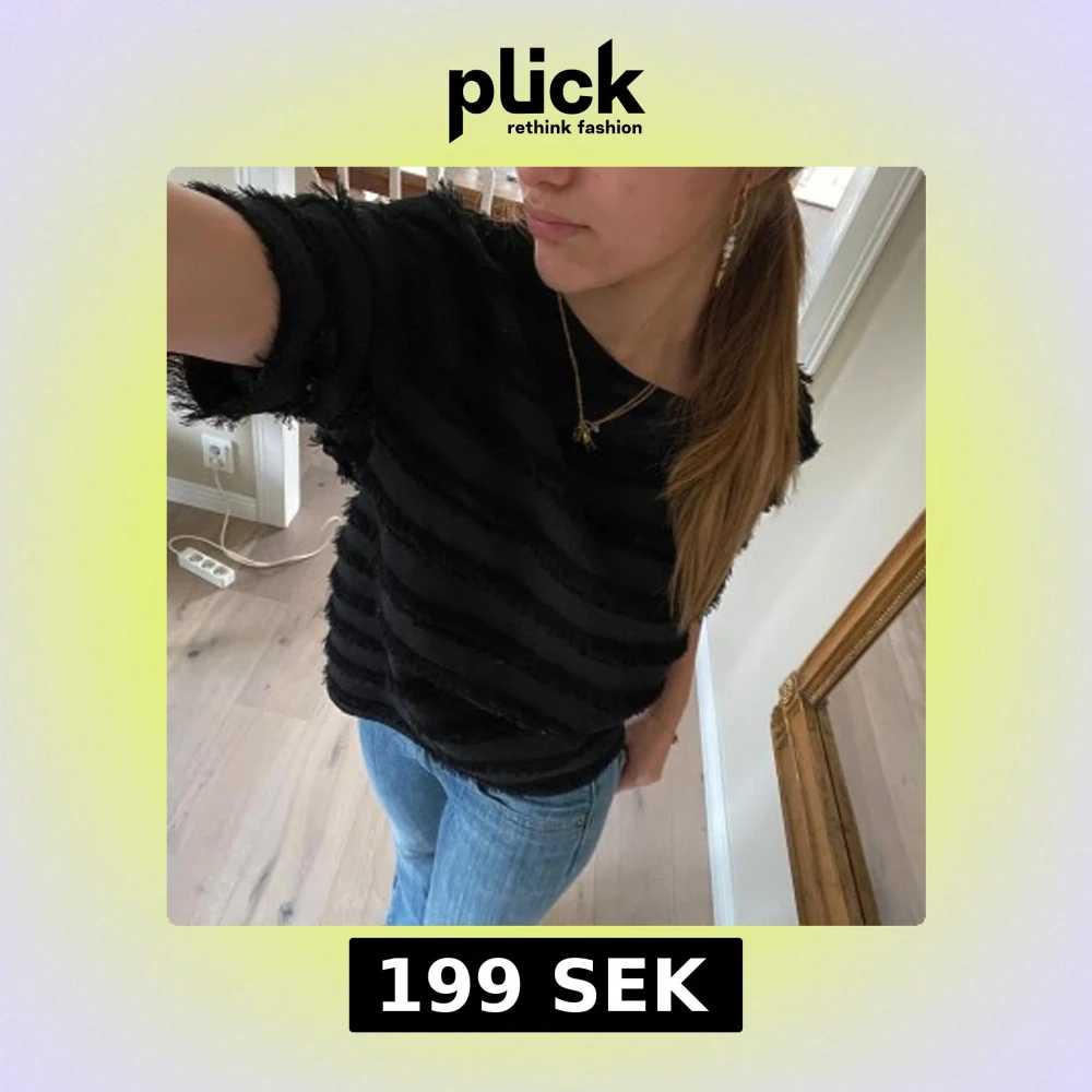 Snygg svart topp med fransar och korta ärmar. Köpt på H&M STORLEK - M PRIS går att diskutera! Skriv om du har frågor 🫶🤍