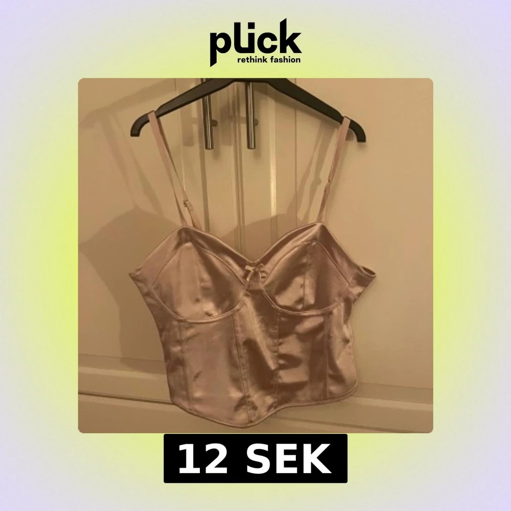 Säljer en elegant rosa korsett i satin med justerbara axelband och en söt rosett framtill. Perfekt för en stilfull look.