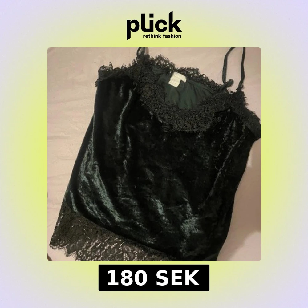 Säljer en svart linnetopp från H&M i mjuk sammet med spetsdetaljer vid halsringning och nederkant. Toppen har smala axelband och en elegant, mörk look som känns lyxig och cool. Perfekt för dig som gillar att sticka ut med snygga material och detaljer.