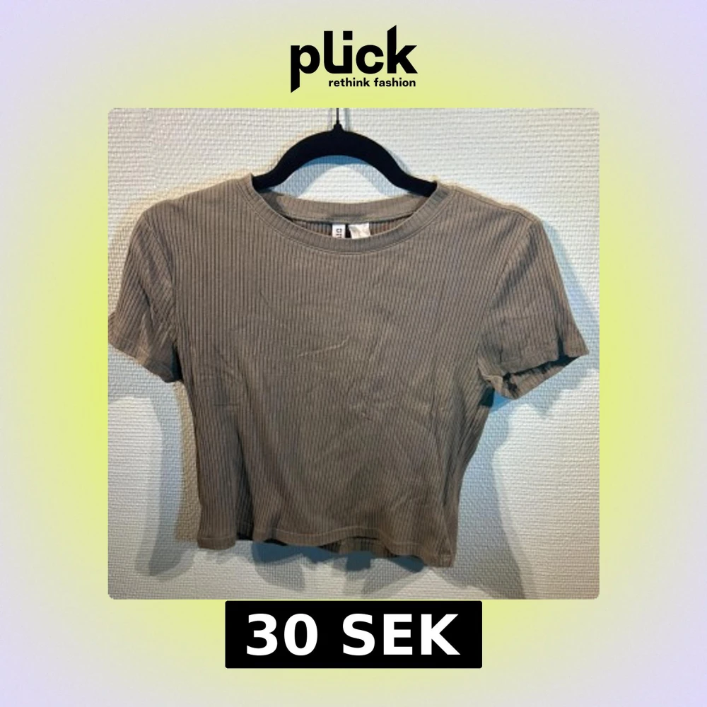 Säljer en stilren grön ribbad t-shirt med korta ärmar. Perfekt för en avslappnad look. T-shirten har en rund halsringning och är i en mjuk och bekväm kvalitet.