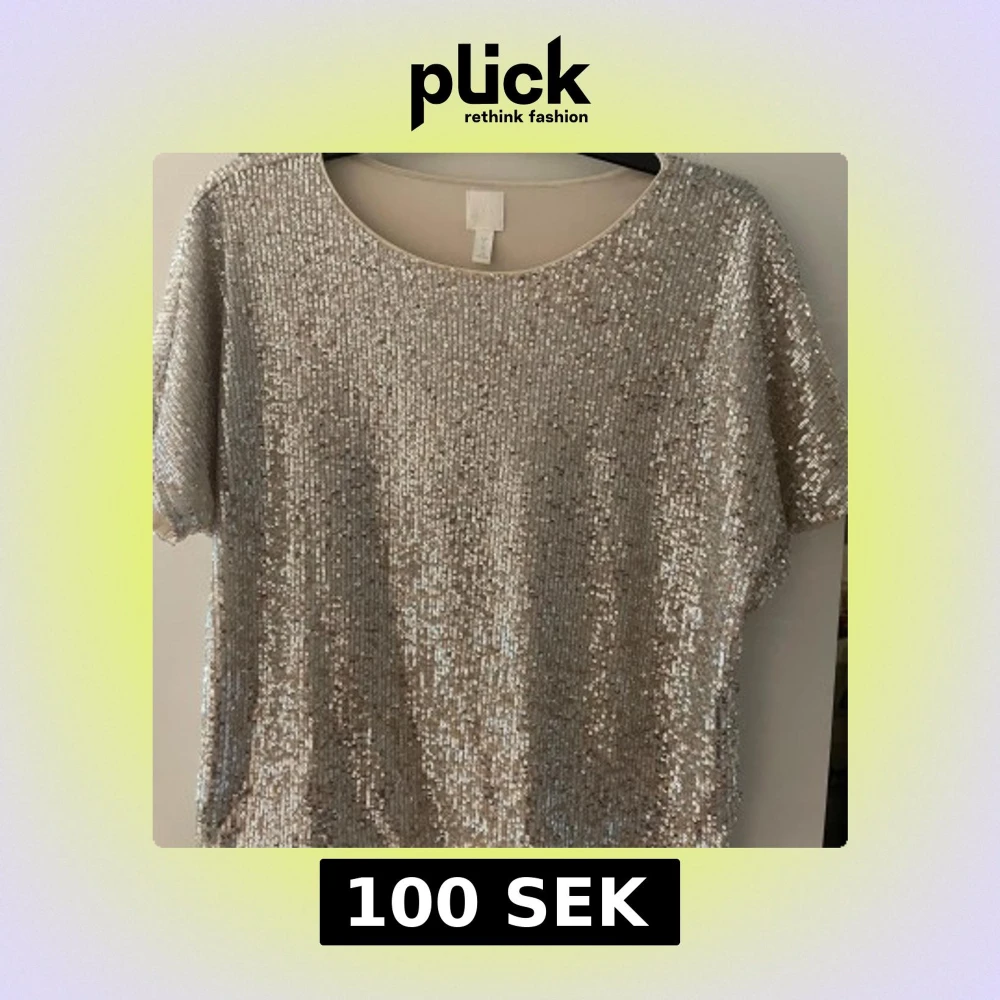 Säljer en glittrig silver/guldig topp från H&M med korta ärmar. Toppen är täckt av paljetter och har en rund halsringning.