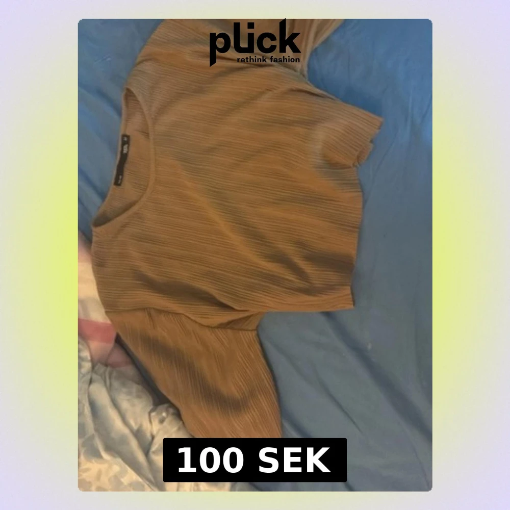 Säljer en beige ribbad topp från H&M med korta ärmar och rund hals. Toppen har en croppad passform och är tillverkad i ett mjukt, stretchigt material som sitter snyggt på kroppen. Perfekt att matcha med höga jeans eller kjol.