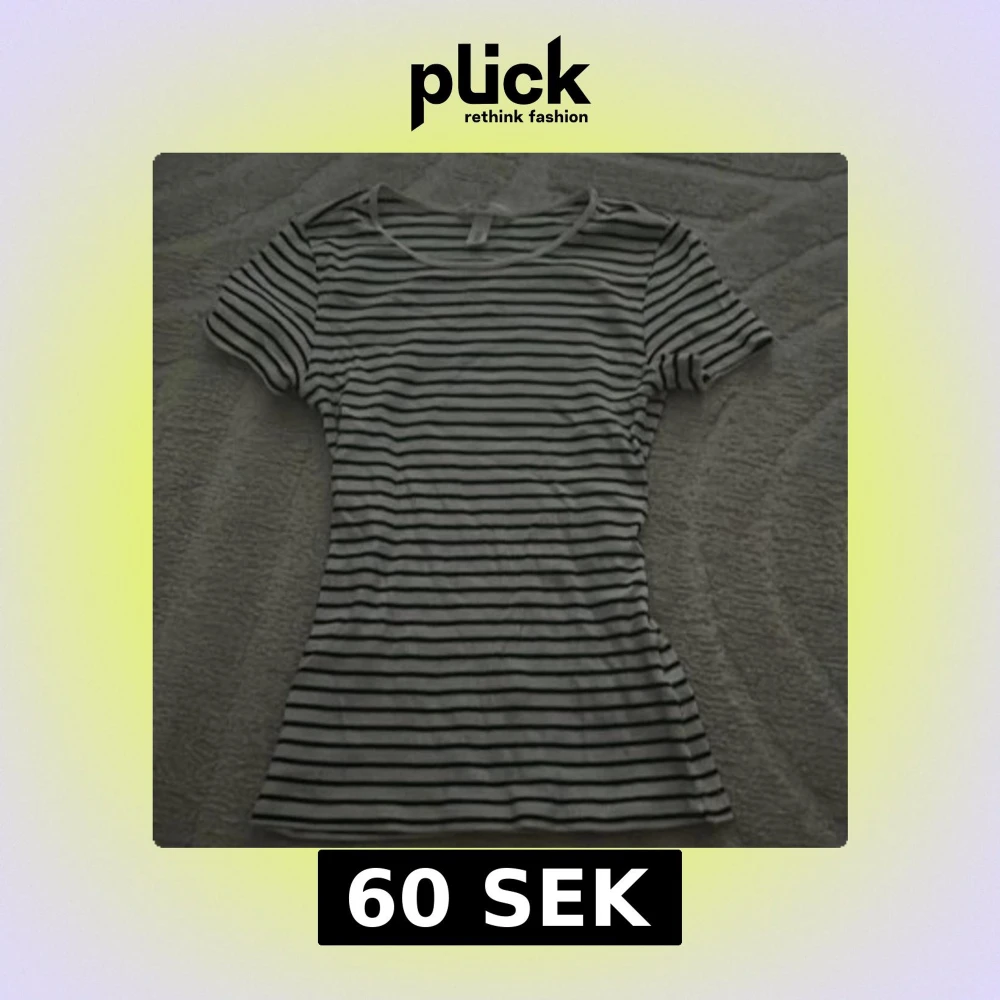 Säljer en klassisk vit topp med svarta horisontella ränder. Modellen är figurnära med rund halsringning och korta ärmar. Perfekt för en chill och stilren look, enkel att matcha med jeans eller kjol, skriv vid funderingar☺️☺️