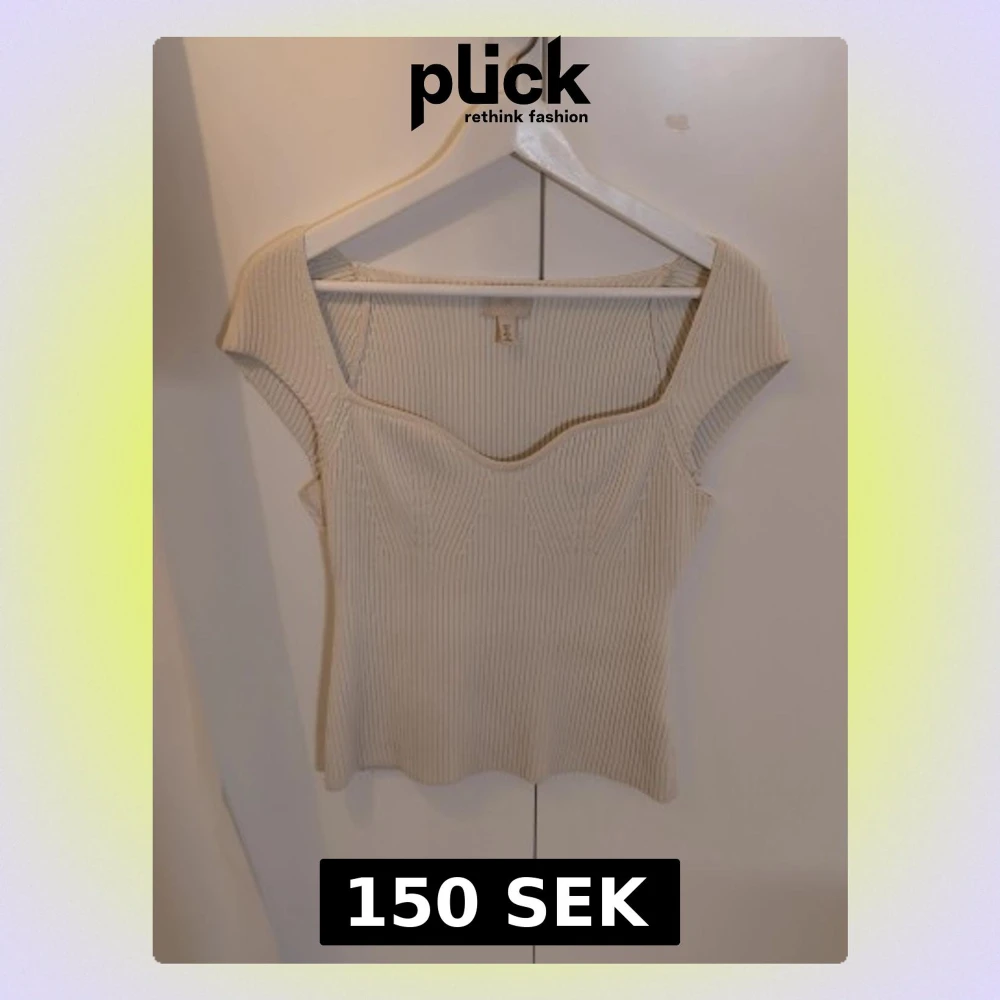 Säljer en beige ribbad topp från H&M i storlek S. Toppen har en söt sweetheart-urringning och korta ärmar. Materialet är stretchigt och ger en snygg passform. Perfekt att styla med jeans eller kjol för en trendig look.