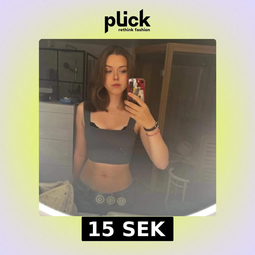 Säljer en mörkgrå croppad linnetopp med breda axelband och ribbad struktur. Toppen är ärmlös och har en fyrkantig urringning både fram och bak. Perfekt för en chill och stilren look.