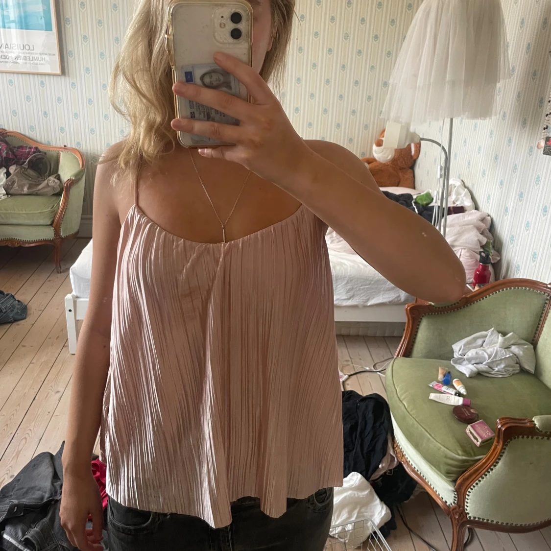 Säljer denna super fina ljusrosa linnetopp med tunna axelband och plisserad struktur. Perfekt till fest