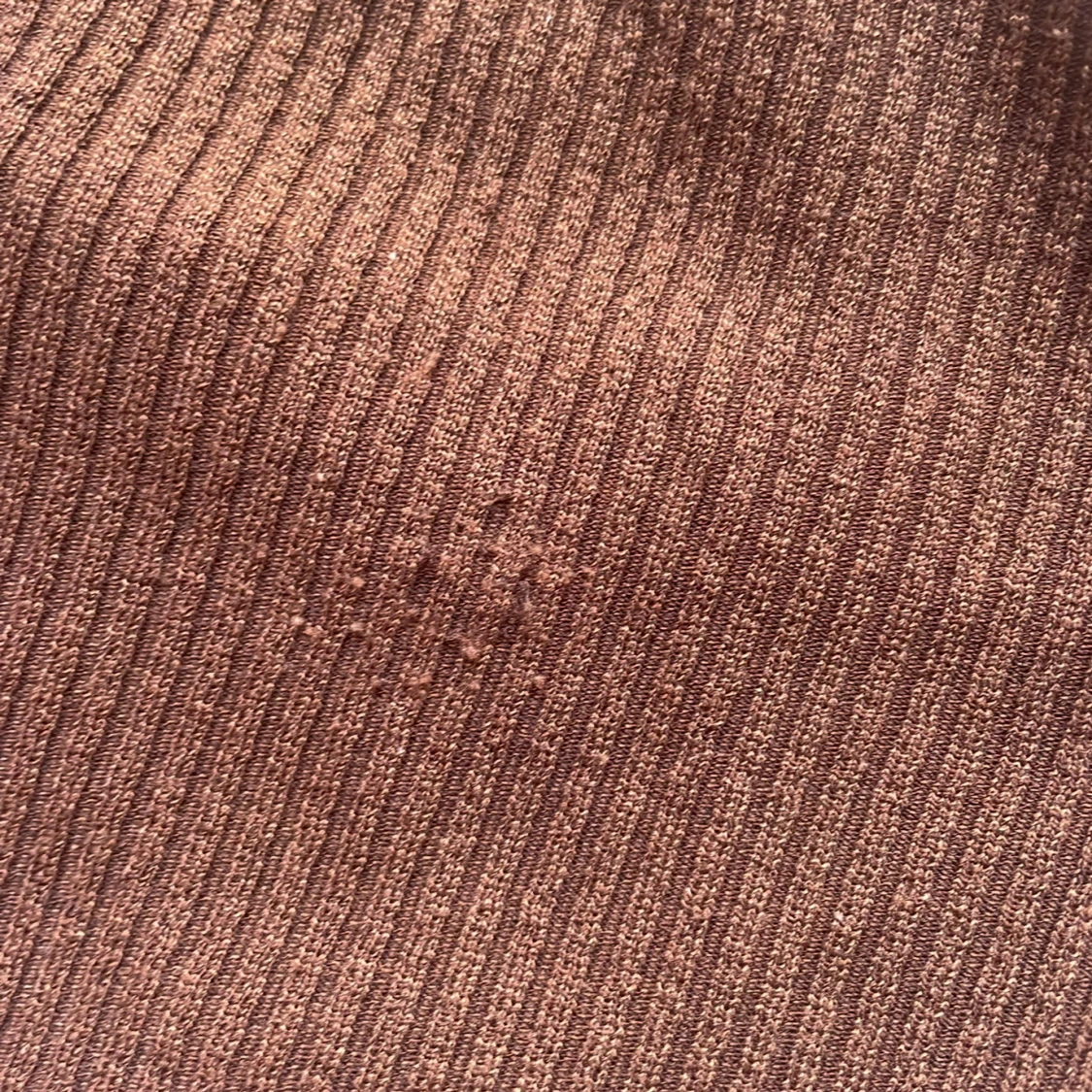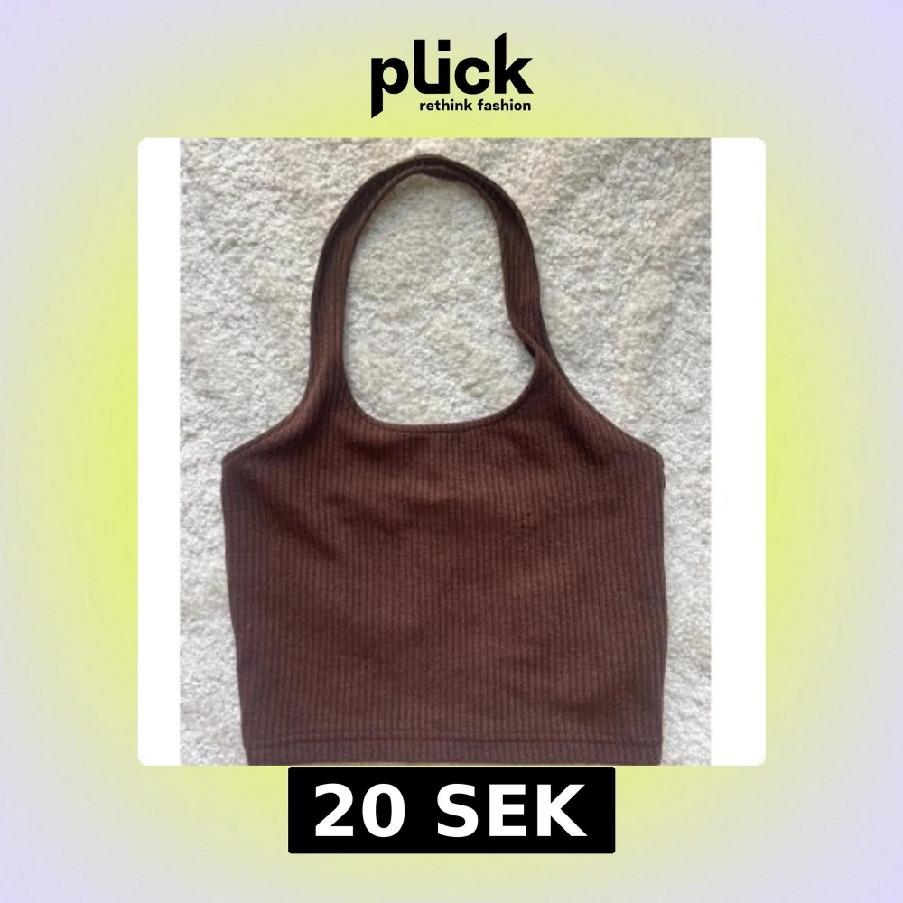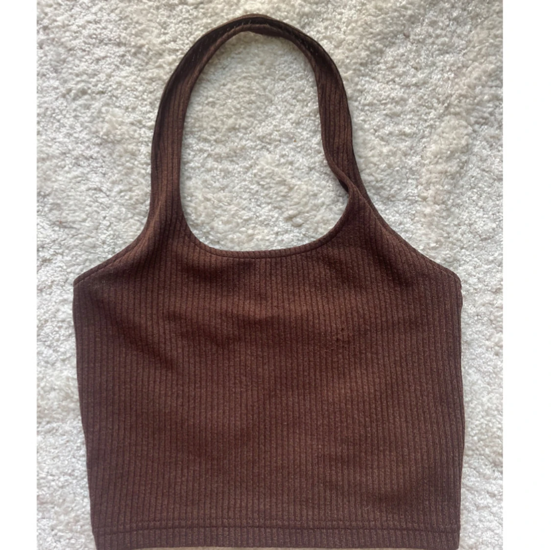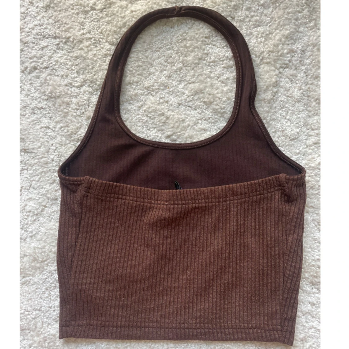 Lite noppig på ett ställe. Snygg brun croppat linne halterneck och ribbad struktur. Toppen har en enkel, stilren design och är perfekt för att matcha med jeans eller kjol. Materialet känns mjukt och stretchigt, vilket gör den skön att bära hela dagen.