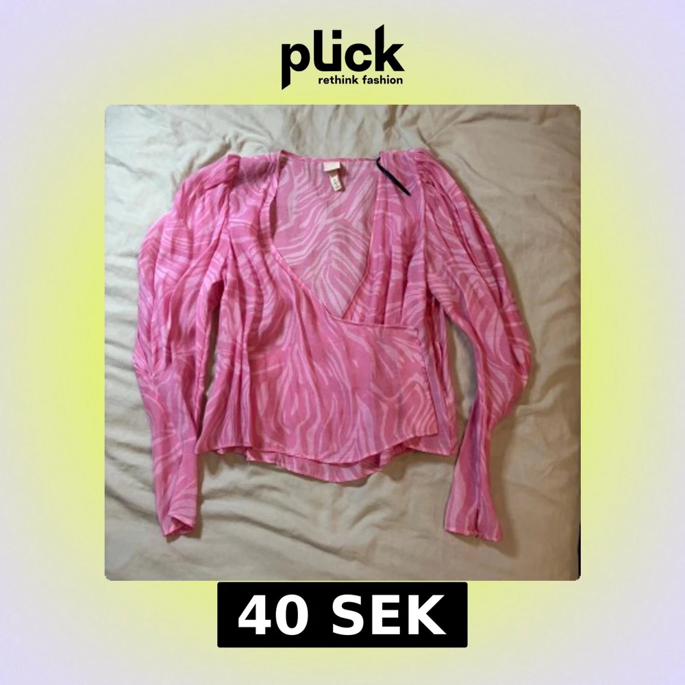 Säljer en rosa omlottblus från H&M med ett zebramönster. Blusen har långa ärmar och en djup v-ringning. Perfekt för en trendig look!