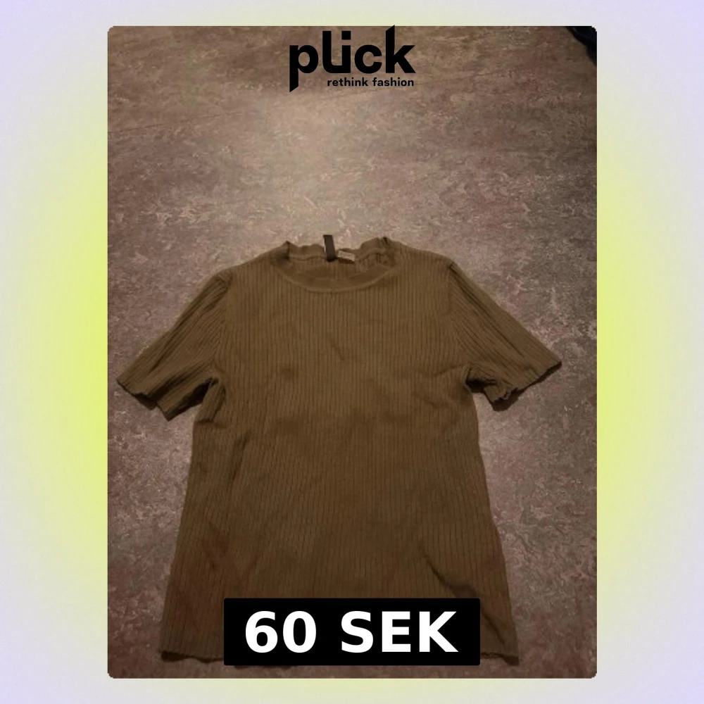 Säljer en olivgrön ribbad topp med korta ärmar och hög hals. Toppen har en enkel, stilren design och är perfekt att matcha med både jeans och kjol. Materialet känns mjukt och stretchigt för en bekväm passform.