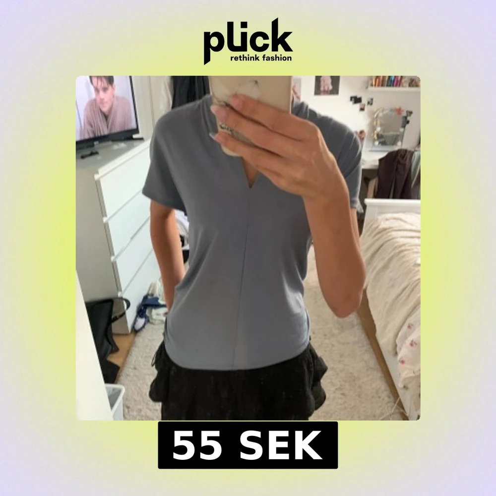 Säljer en stilren ljusblå topp med v-ringning och korta ärmar. Toppen har en rak passform och är enkel men ändå snygg, perfekt att matcha med kjol eller jeans. Materialet känns mjukt och följsamt mot huden.