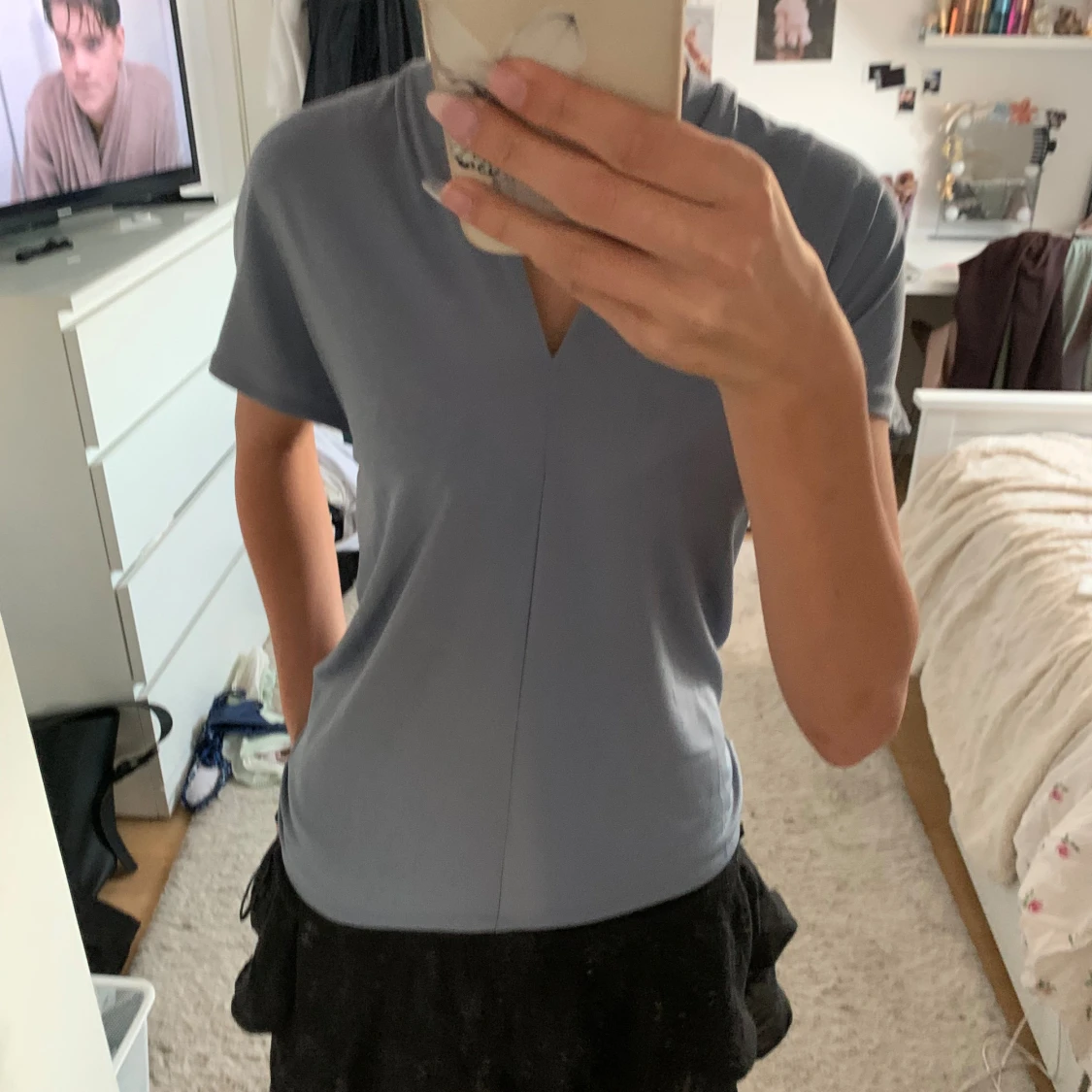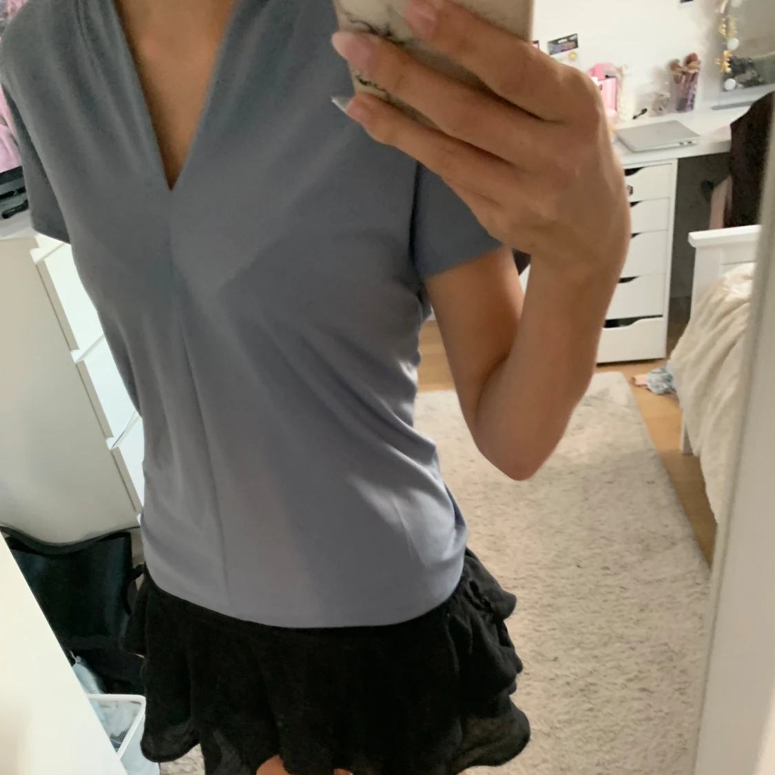 Ljusblå v-ringad topp med kort ärm