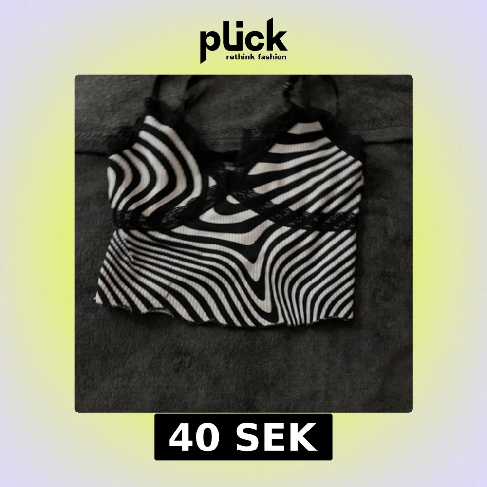 Säljer en cool zebramönstrad ribbad topp med spetsdetaljer. Toppen har smala axelband och en v-ringad design. Perfekt för att ge en edgy touch till din outfit(priset sänks för hållet men det är knappt märkbart och är lätt att sy ihop)