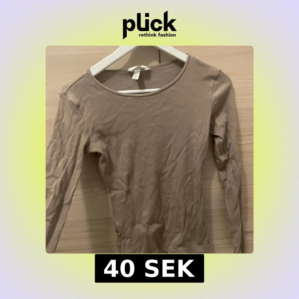 En basic beige långärmad topp från H&M med rund halsringning och ribbad struktur.