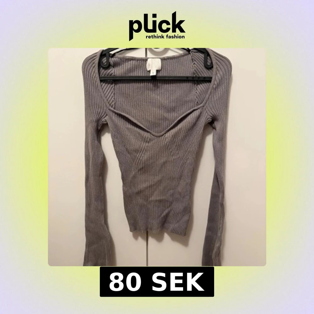 Säljer en ribbad grå långärmad topp från H&M i storlek S med v-ringning och figurnära passform. Ärmarna är även lite långa och rött så stor vid bröst.