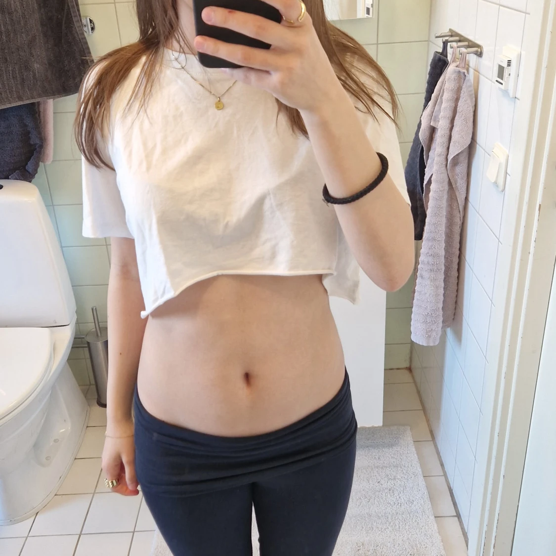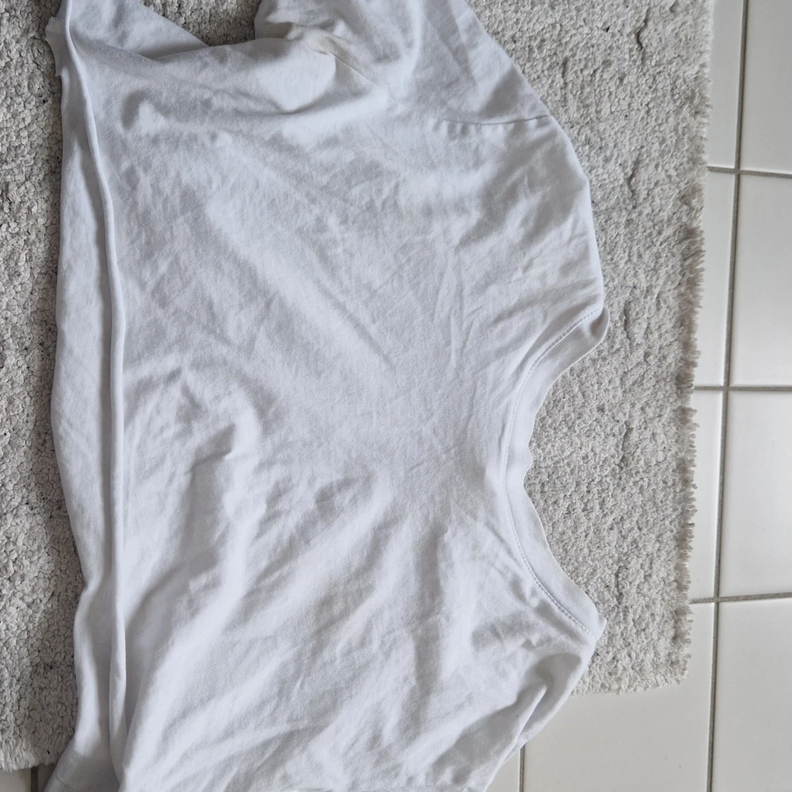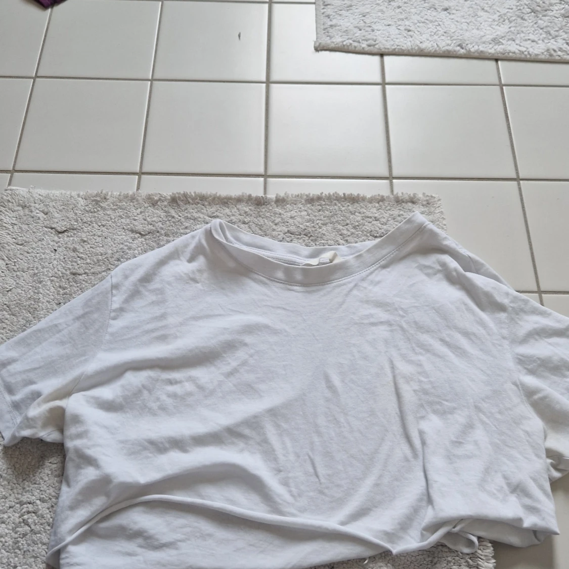 Enkel och stilren vit croppad t-shirt med rund hals och korta ärmar. T-shirten är loose fit och gjord i mjuk bomull, perfekt för en avslappnad look. Passar dig som gillar minimalistisk stil och vill ha en basic topp i garderoben.
