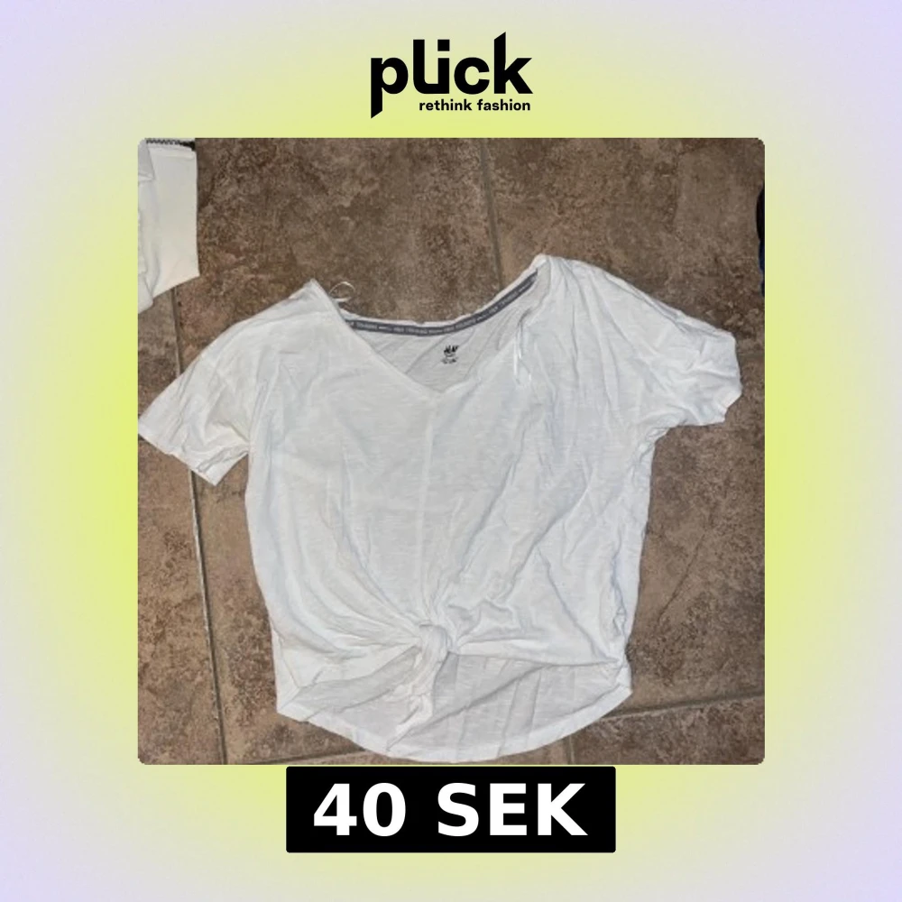 Vit kortärmad topp från H&M Training med v-ringning och snygg knytning framtill. Tunt och lätt material som passar perfekt till träning eller chill. Enkel och stilren design som är lätt att matcha med andra plagg.