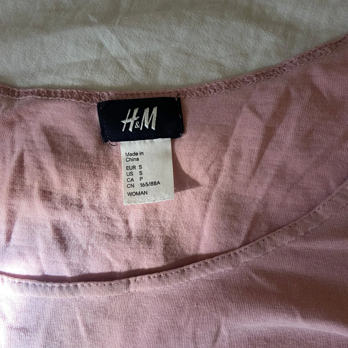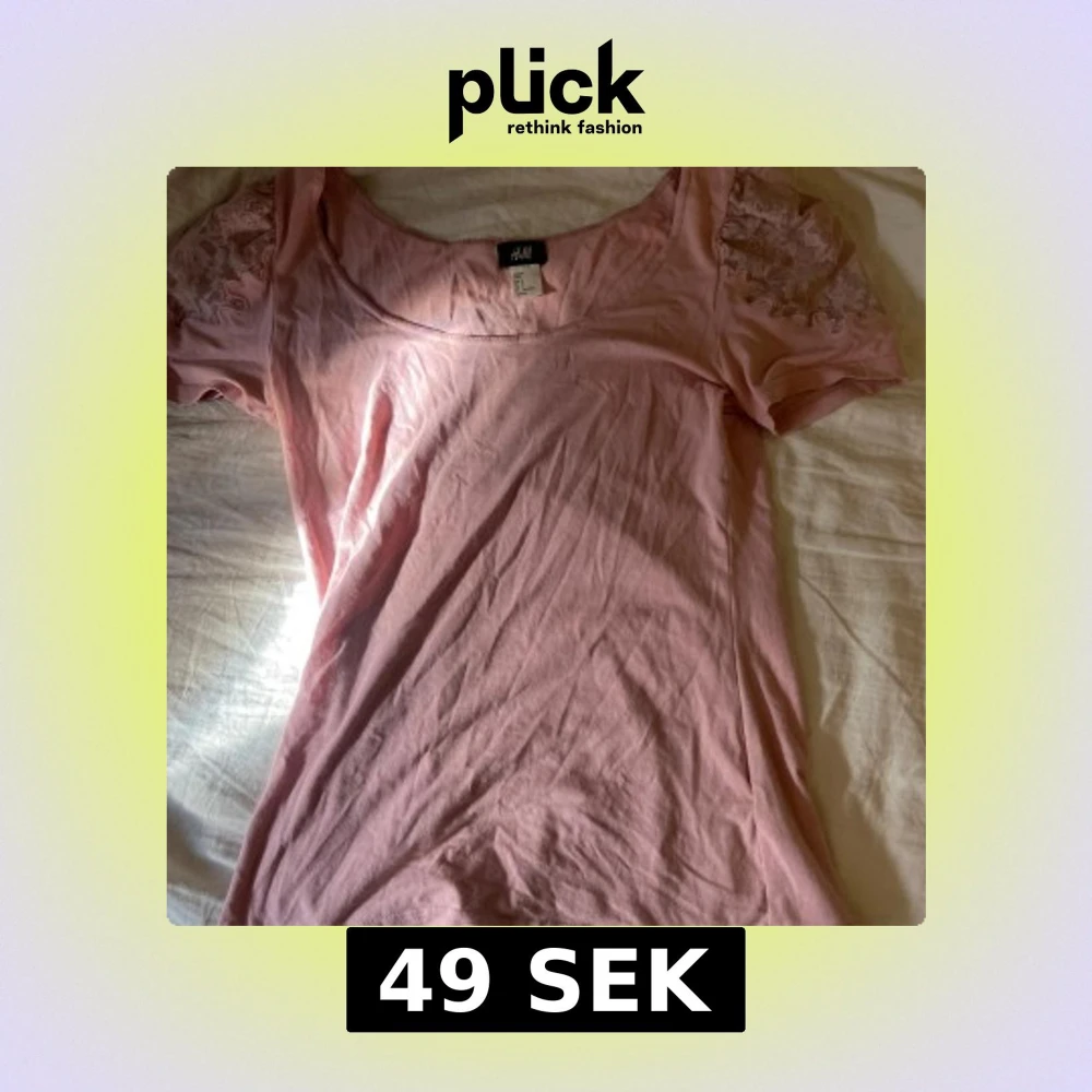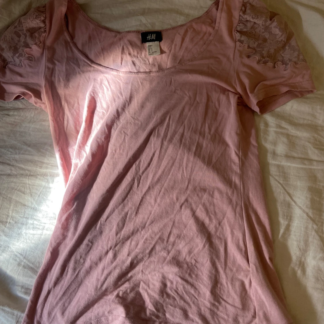 Bra skick!! Söt ljusrosa blus från H&M med korta ärmar och spetsdetaljer på axlarna. Blusen har en rundad halsringning och är gjord i mjuk bomull, perfekt för en chill och feminin look.