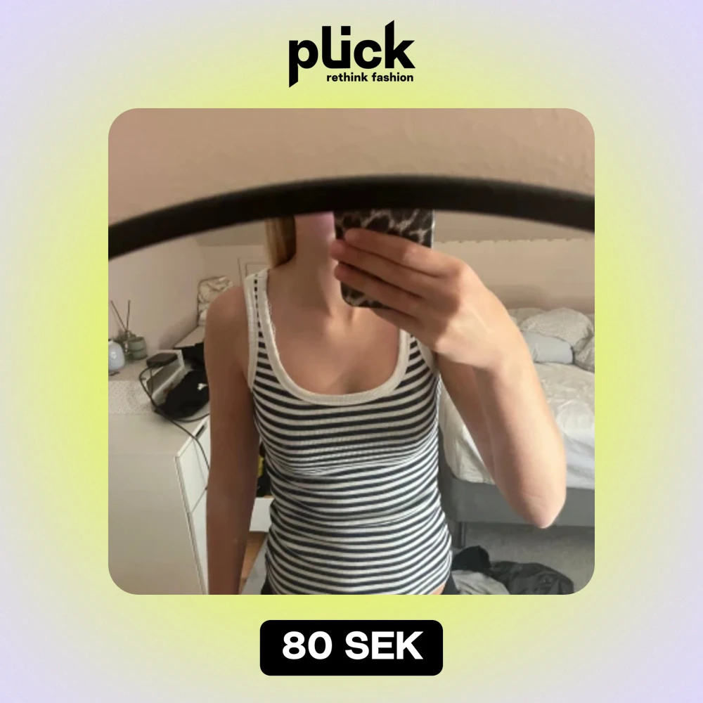 Jag säljer ett svart vit randigt linne från HM i storlek S. Det är i bra skick då det inte har använt så många gånger.💗