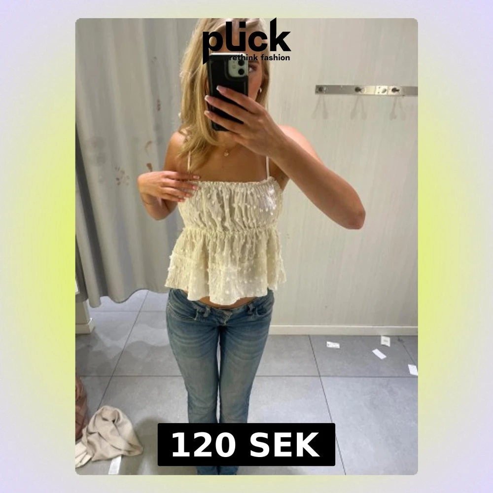 Supersöt vit linnetopp med tunna axelband och volangig nederdel. Skriv för fler bilder 🥰