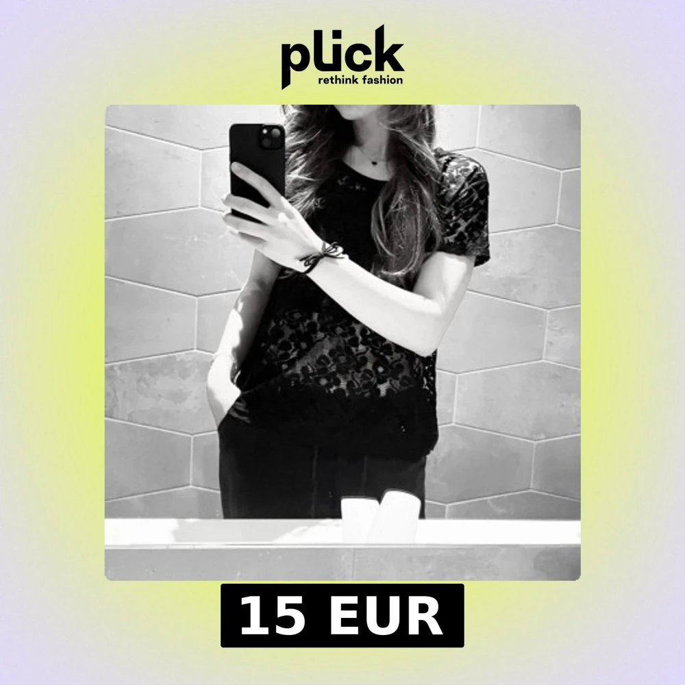 Superfin svart blommig spetsblus med korta ärmar. Blusen är transparent med ett snyggt blommönster och rund halsringning. Använd fåtal gånger ☺️