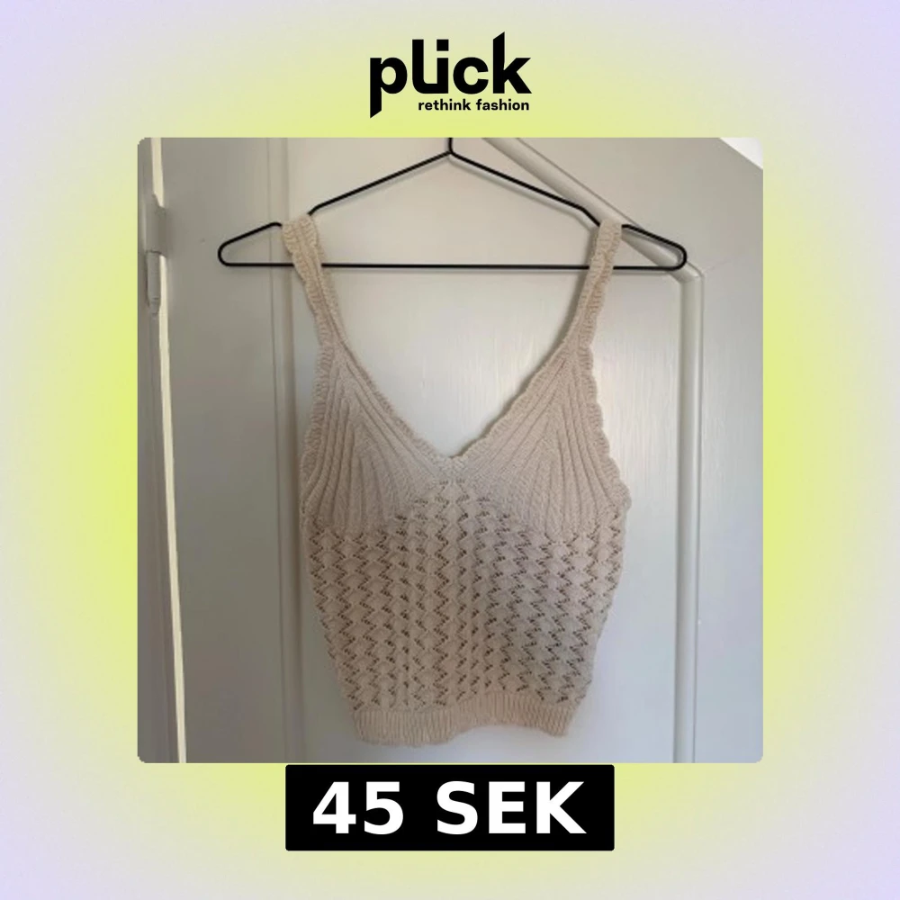 Supersöt beige virkad linnetopp från H&M i storlek S. Toppen har ett snyggt hålmönster och ribbade detaljer vid bysten och nederkanten samt en v-ringning. Perfekt till jeans eller kjol för en chill sommarlook!🥰