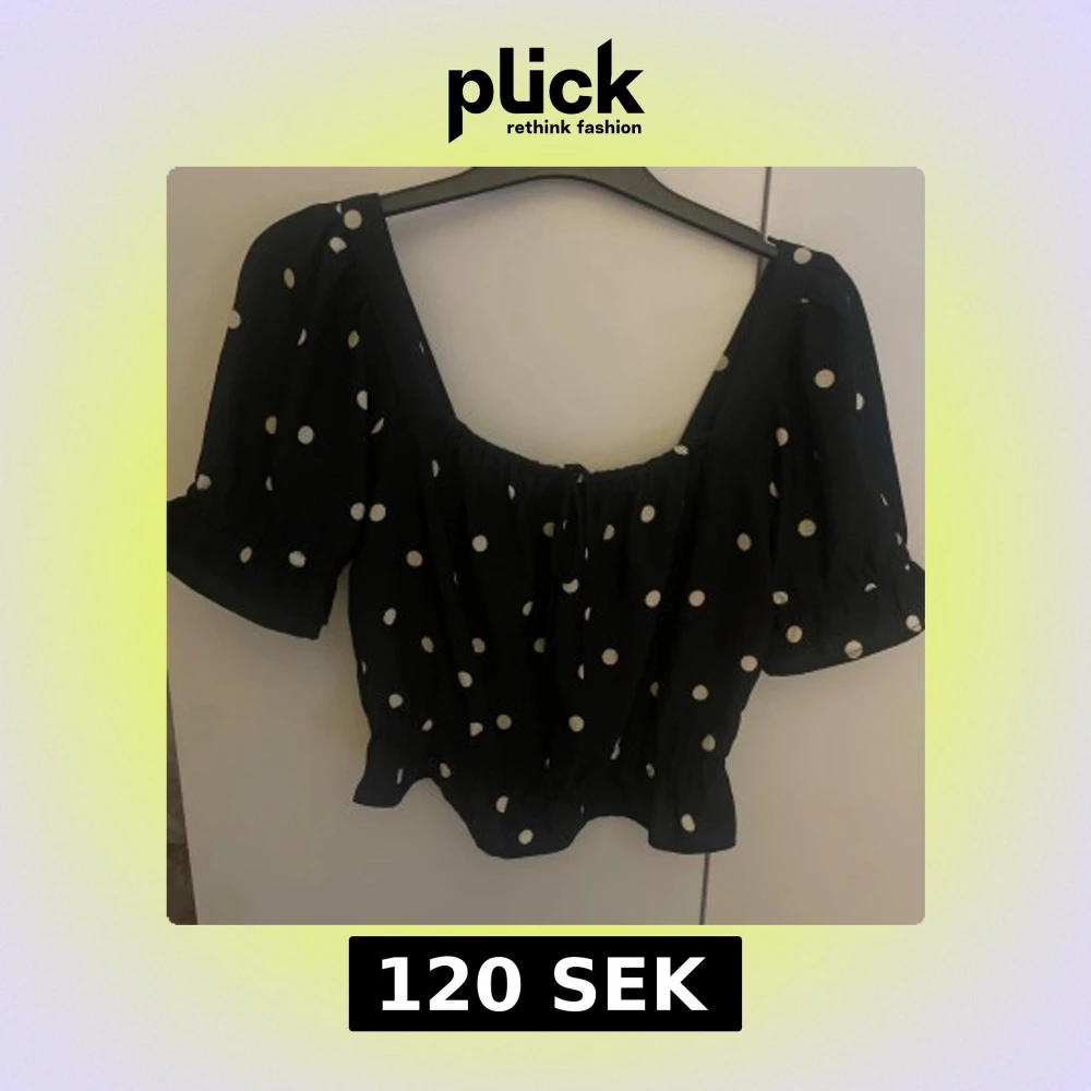 Supersöt svart blus från H&M med vita prickar och korta puffärmar.