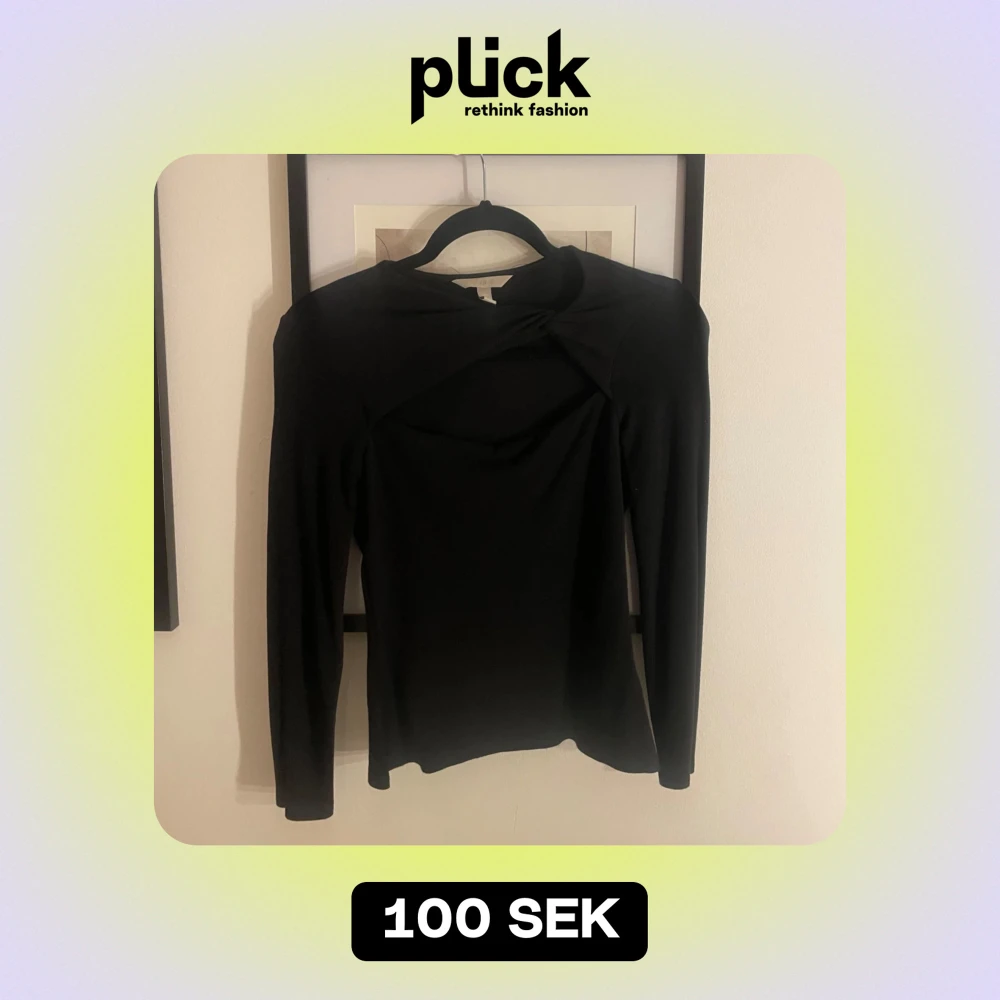 Säljer denna snygga svarta långärmade topp med knutdetalj vid halsen. Använd fåtal gånger och är i bra skick! Pris kan diskuteras🩷