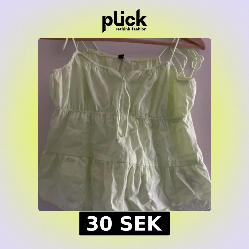 Jättesöt ljusgrön topp med smala axelband och volangdetaljer. Toppen har en luftig passform och passar fint med tex jeansshorts. Aldrig använd.