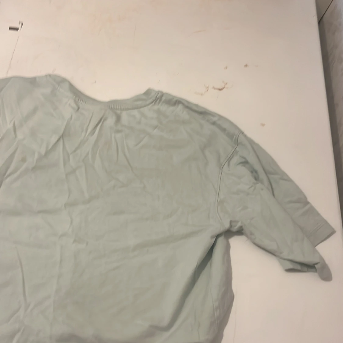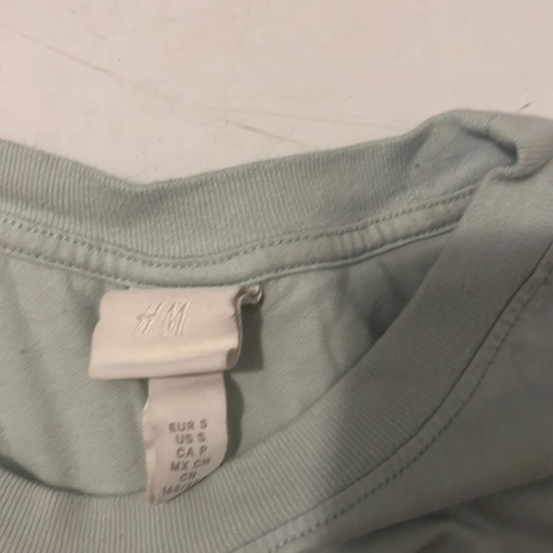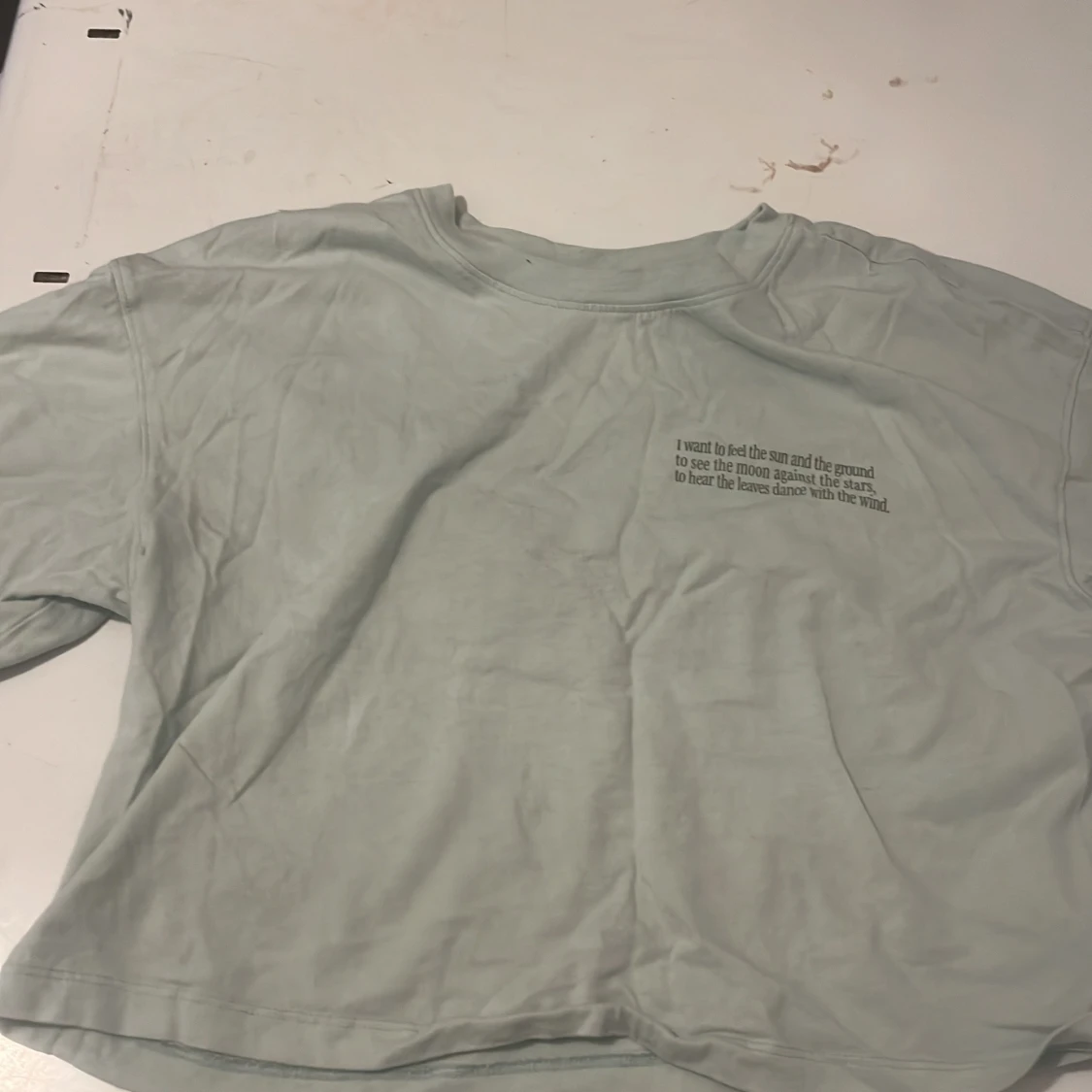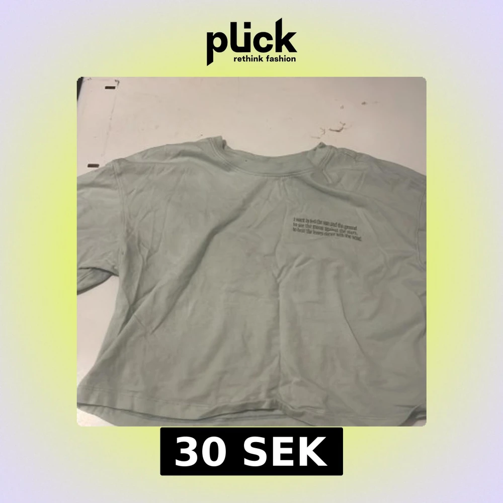 Ljusblå croppad t-shirt med kort ärm och tryckt text på bröstet. T-shirten har en avslappnad passform och är tillverkad i mjuk bomull. Perfekt för en chill och enkel stil.