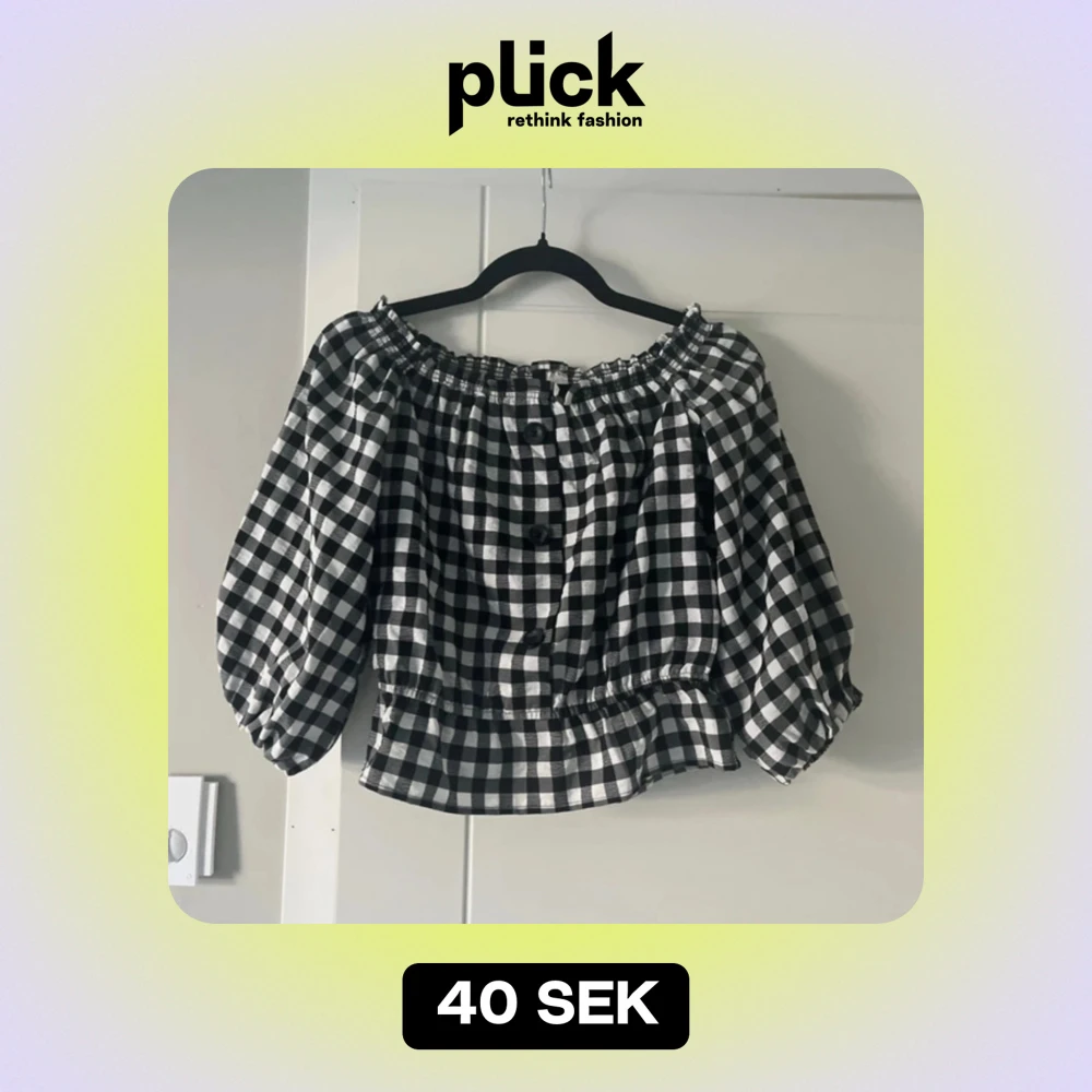 Svartvit rutig offshoulder topp