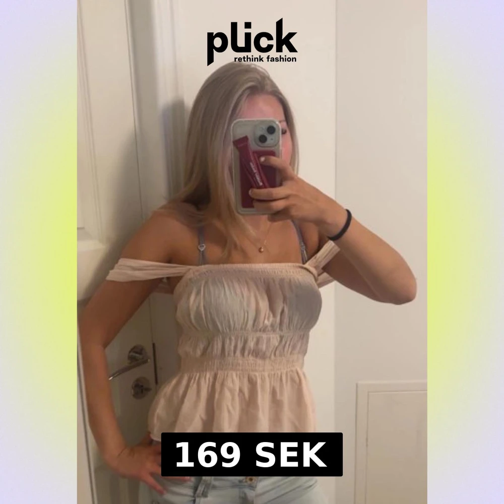 Supersöt ljusrosa blus/topp med smockad midja. Toppen har volang nertill och är tillverkad i ett tunt, luftigt bomullstyg. Man kan välja hur man vill ha banden, antingen offshoulder eller inte🩷🩷