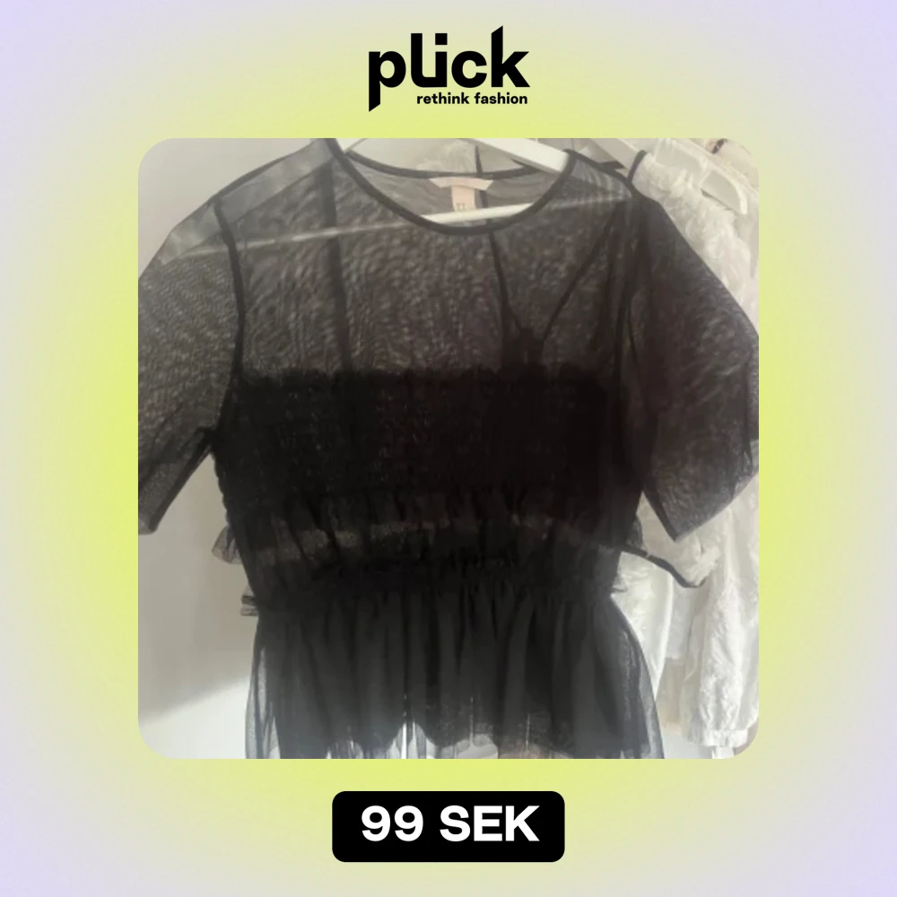 JĂ€ttefin svart Meshtopp med volang nertill frĂ„n H&Mđ aldrig anvĂ€nt och i storlek 36