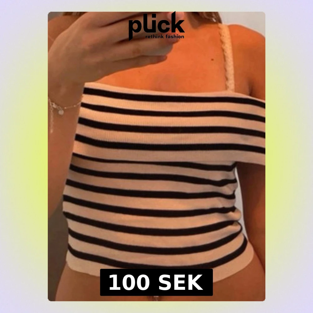 Säljer en ribbad linnetopp från H&M i vitt och svart med horisontella ränder.